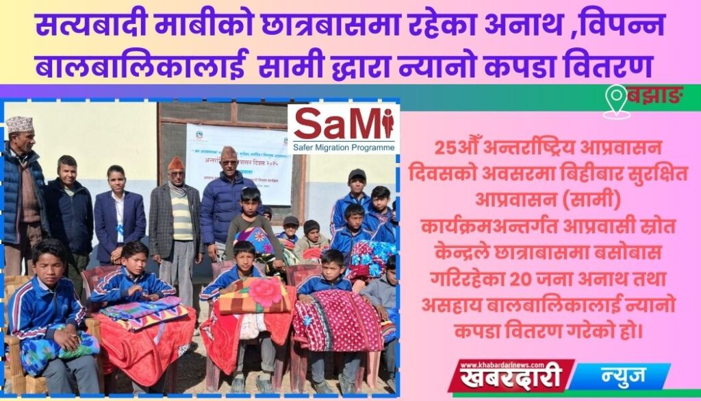 सत्यबादी माबीको छात्रबासमा रहेका अनाथ ,विपन्न बालबालिकालाई सामी द्धारा न्यानो कपडा वितरण