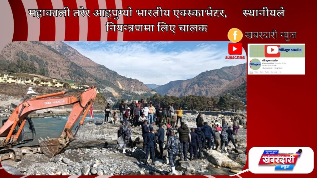 महाकाली तरेर आइपुग्यो भारतीय एक्स्काभेटर, स्थानीयले नियन्त्रणमा लिए चालक