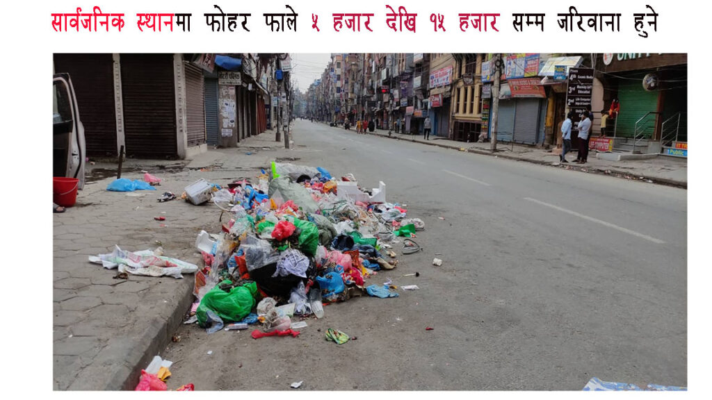 काठमाण्डौमा सार्वजनिक ठाउँमा फोहर फाल्नेलाई ५ देखि १५ हजार रुपैयाँसम्म जरिवाना